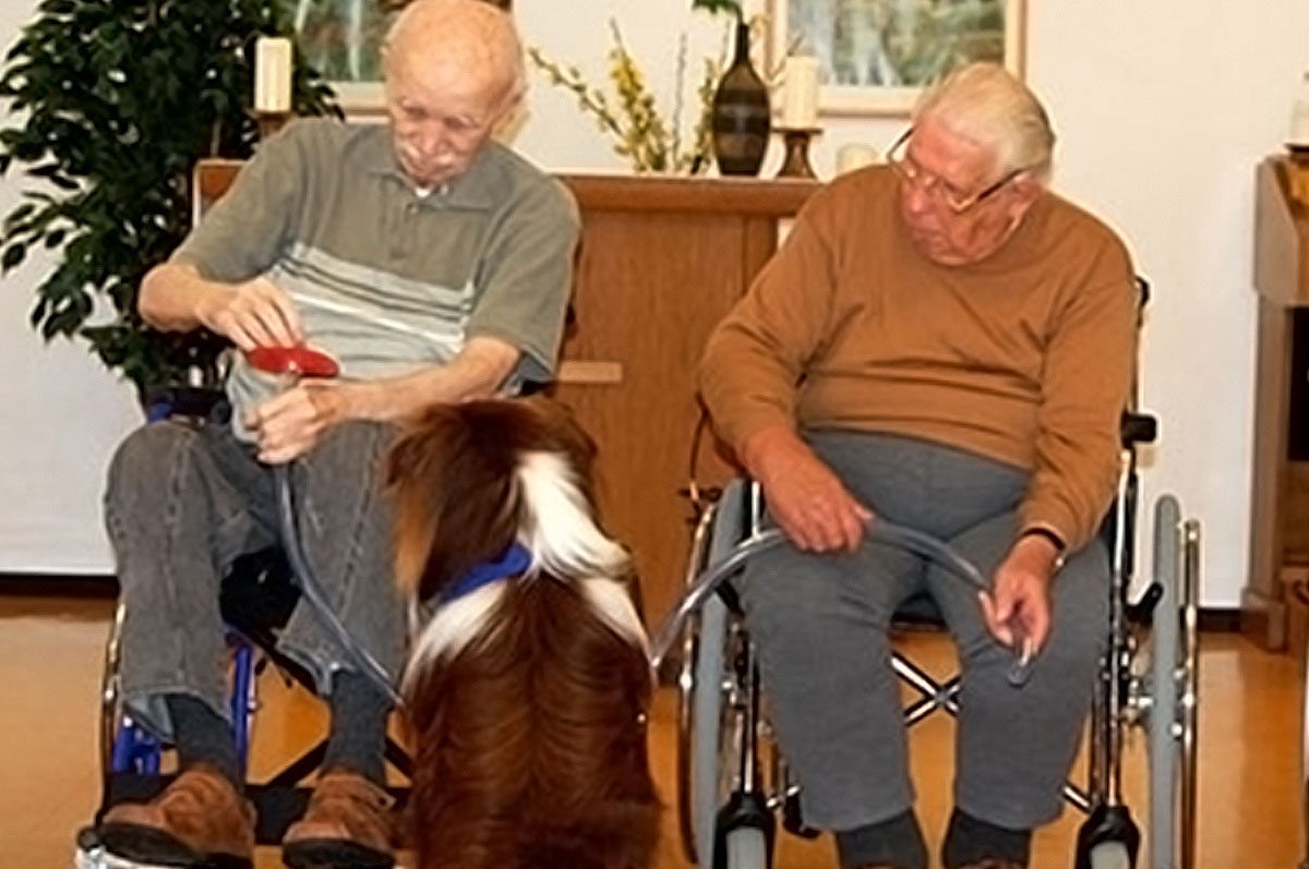 Um mein Wissen über Hunde, deren Kommunikation mit Artgenossen und Menschen, sowie die tiefere Psyche und alle damit zusammenhängenden Verhaltensweisen zu erlernen, habe ich im Oktober 2011 eine Ausbildung zur Tiertherapeutin bei „Hund's Fidél“ begonnen und im April 2013 erfolgreich abgeschlossen. Seit 2013 besuchen Phil und ich einmal Wöchentlich zum Therapieeinsatz das AWO Seniorenzentrum in Kierspe.